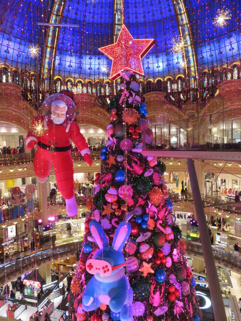 Neem ook zeker een kijkje in de warenhuizen, bijvoorbeeld bij Galeries Lafayette Haussmann. Niet alleen is het een prachtig warenhuis met meerdere etages in Art nouveau stijl, ze hebben ook altijd een versierde kerstboom in het midden staan. Dit is niet zomaar een kerstboom, maar een beleving op zich. Ik neem er altijd een kijkje en ben nog nooit teleurgesteld. Kijk maar: